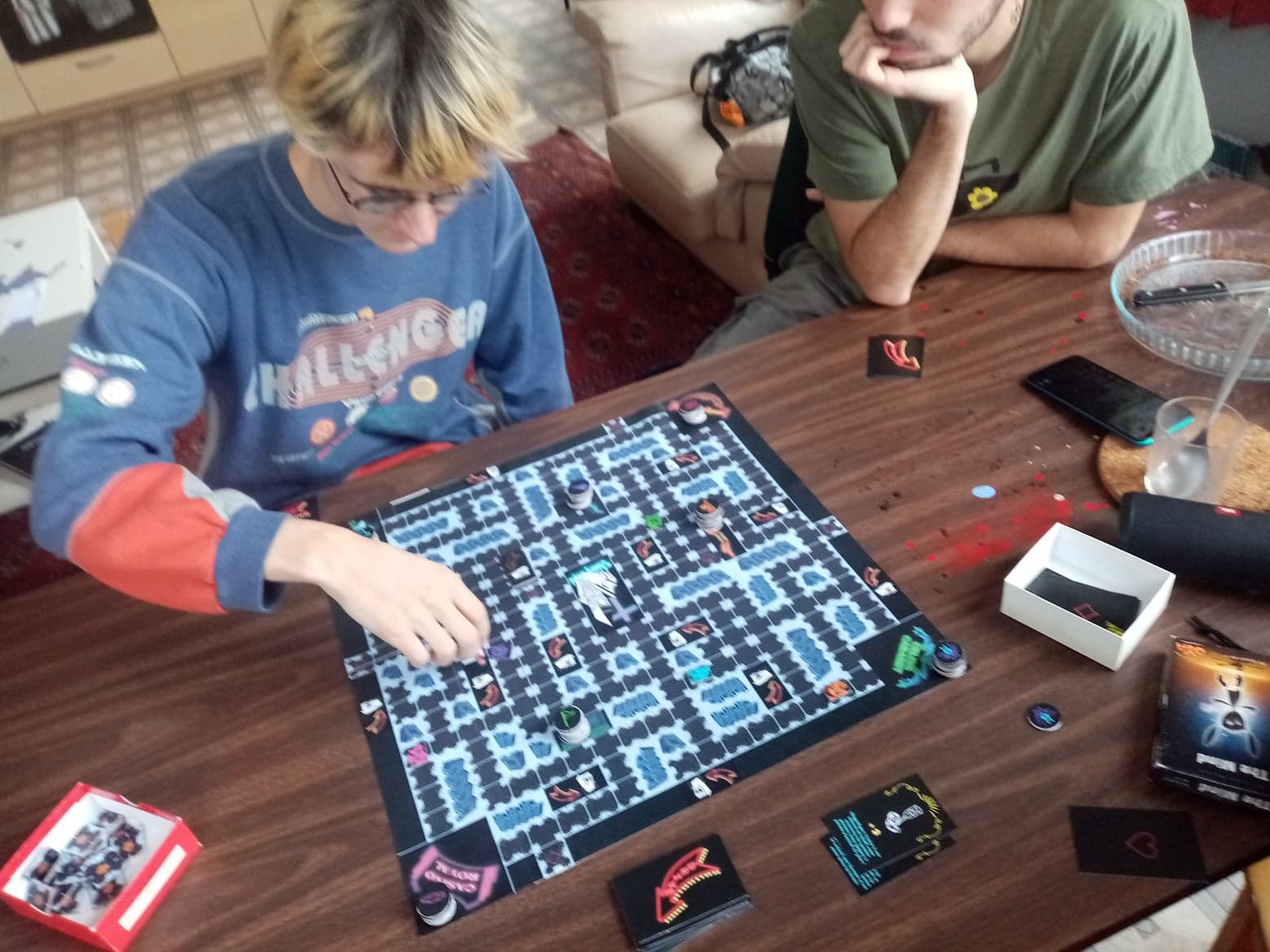 We've created this game and its graphics over two days, during a self organized game jam. Then the printing of the box took a few more days. For this project I did the game design, and the playtests. The graphics were made by Oskar Bonnet, Sarah Chapuis and Violette Potet. And the box was printed and built by Sarah and violette.